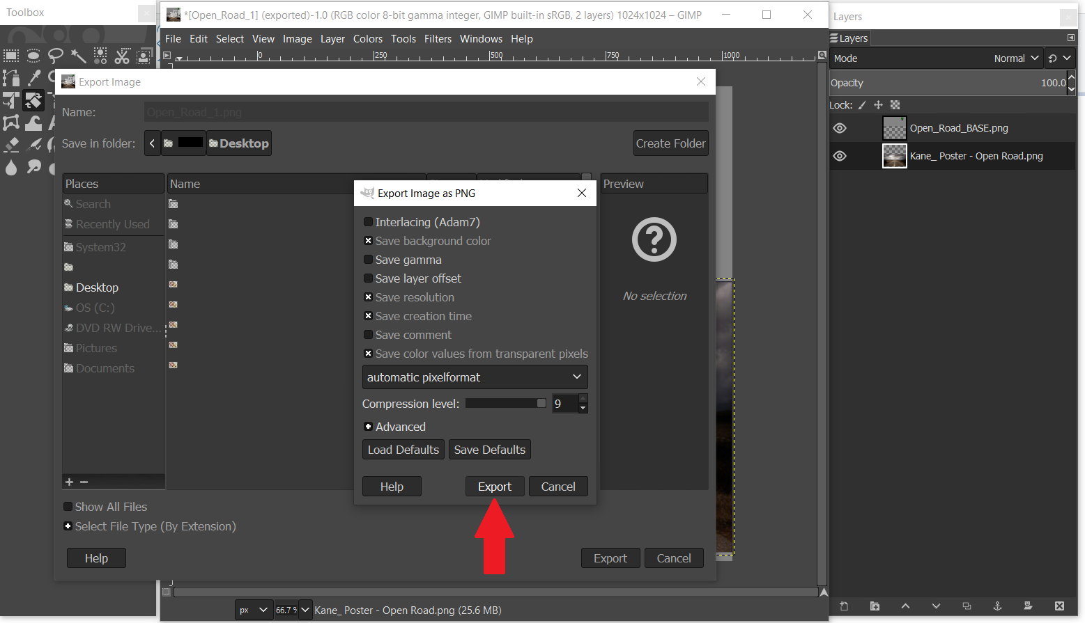 Step 12 – When a window pops up, Select the Export button. Then close Gimp.